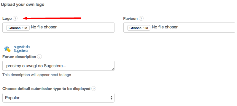 To add your own logo to the Suggestions Forum, go to Settings > Forum configuration > Layout customization.