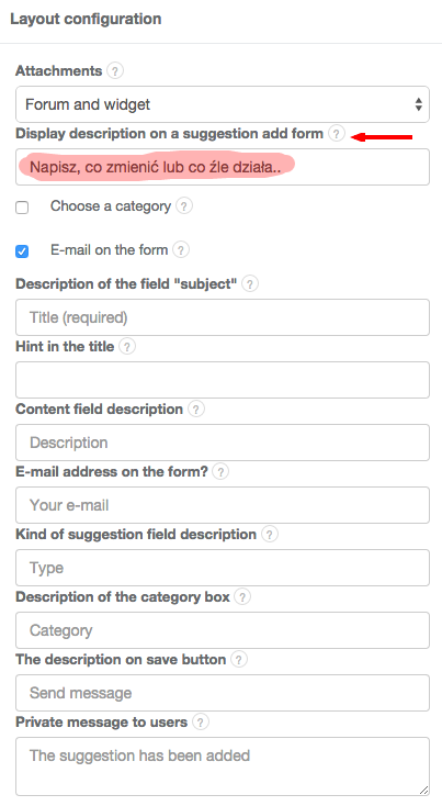 To change what placeholder text is displayed in the new submission form, go to Settings > Forum configuration > Layout configuration.