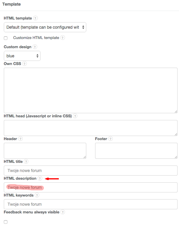 How to define the HTML description of my forum