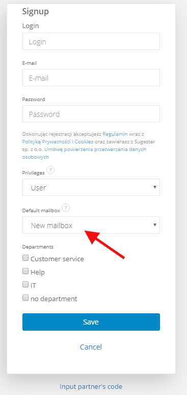 By default each new user automatically gets a personal mailbox. If you want to disable this option, unfold the list and select None during the registration process (Users > Add user).