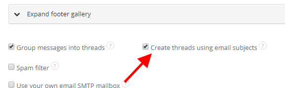Create threads using email subjects Mark this checkbox if you want emails to be joined into threads additionaly by title. In this case, Sugester looks at sender's email address and email's title - if there's already an email with the same title, and if the new email's sender was also older email sender/receiver, the system will join messeges into one thread. To enable the feature, go to Settings > Email settings > Create threads using email subjects