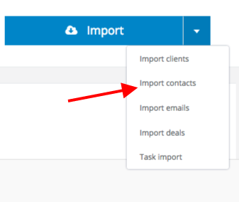 Importing contacts is done analogically to importing clients. Navigate to