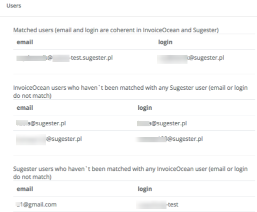 Should it happen that you add new users, who should have access to both systems and was added only in InvoiceOcean (or only in Sugester) they must also be added in the other system.