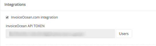 Integrate with InvoiceOcean.com. An additional field will pop-up which will require you to insert the InvoiceOcean API token.