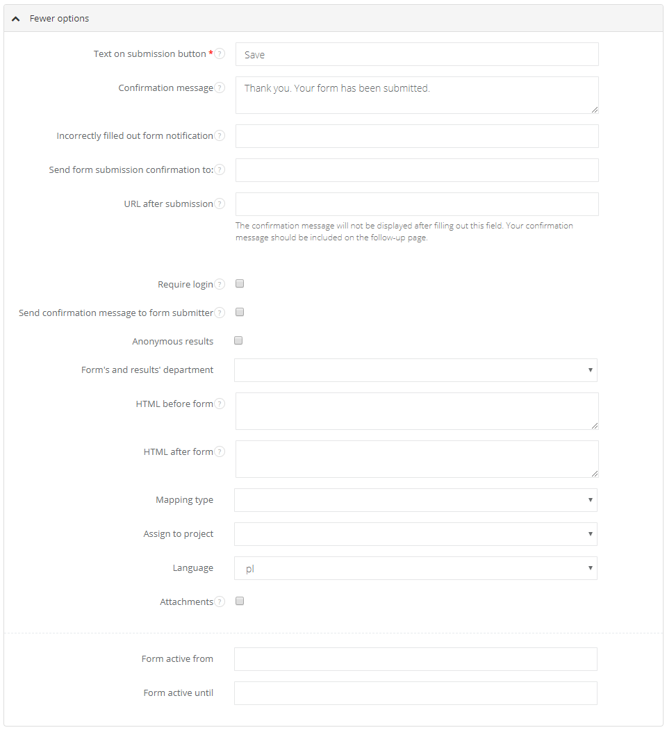- Form active from/until - select the period of time in which users can fill a form