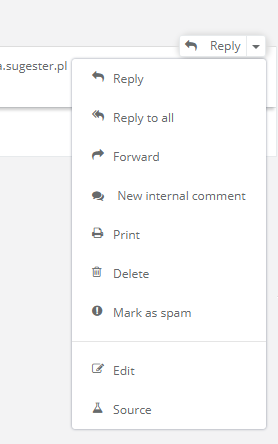 To add an internal comment to an email (i.e. for the purpose of redirecting the email to another team member) you have to the use the drop-down menu in an email reply thread and select: “New internal comment”: