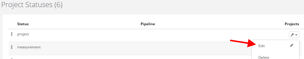 Statuses allow you to quickly filter projects, thanks to statuses we can track the progress of a project at any given moment. In this article, you’ll find: - how to add a new status - how to change the name of a status - how to give a status a color Adding a new status In projects you can define the names of statuses. As is the case of statuses in other modules, you can add a new status by going to Settings > Account Settings > Statuses, click the icon in the top right corner and from the dropdown menu select Project statuses.
