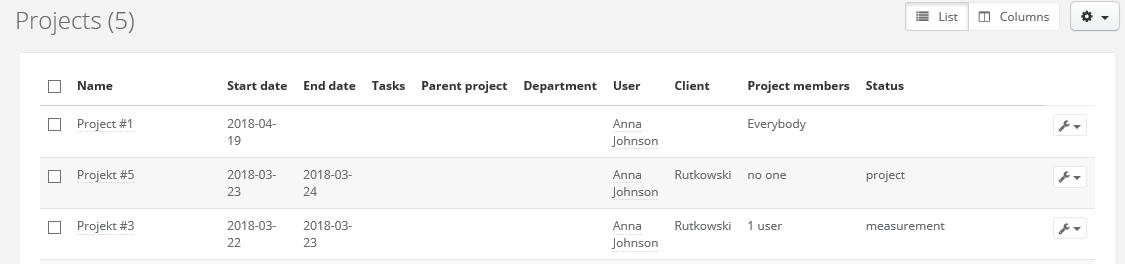 When entering the projects tab, the system will show you all the active / open projects by default. Thanks to this you will be up to date on all the currently undergoing matters in your company.