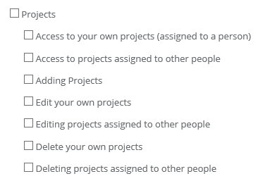 • Access to own projects (assigned to a person) - the minimum level of access. The user will only see projects,