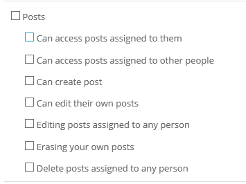 • Access to posts assigned to any person - high level of access. The user will see all posts, not only those that he has added and are assigned to him, but also the posts of all other users in your account.