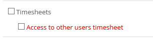 • Access to other people's timesheet - by default, the user has access only to his or her timesheet.