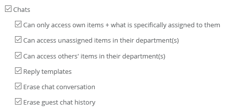 • Access to others' items in their department(s) - the User will be able to start and respond to chats himself, and view the chats of other users within the department to which he is assigned.