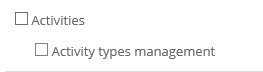 • Activity types management  - the ability to add new activity names. Without these rights, the user, by adding a new activity to the client, can only choose from among existing activities.