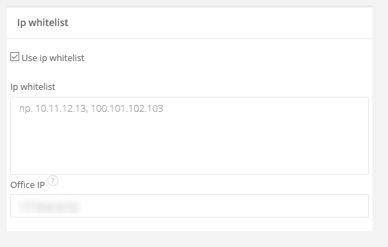 If you want to enable limited access to your account except specified IP addresses, just select Settings > Account settings and tick Use ip whitelist checkbox.