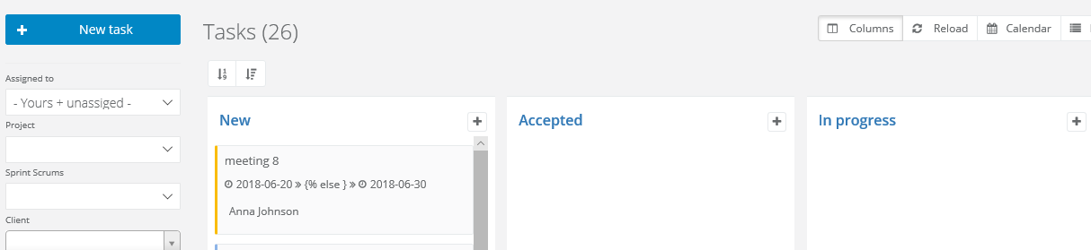 Sugester allows to display tasks (also in projects) in column view (agile, kanban, trello).