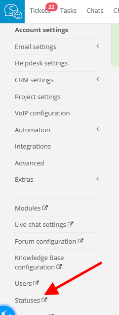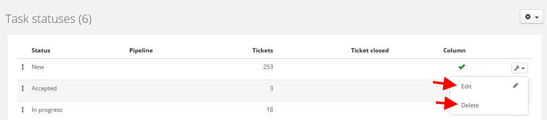 Next, click on cog icon in top right corner and 'Task statuses'. Select 'Edit' or 'Delete' - depending on what you want to do.