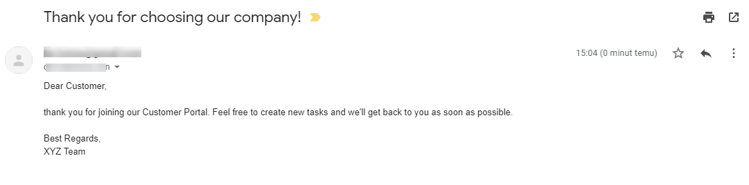 After signing up to the portal, your client will receive a default welcome message, which looks like the one below: