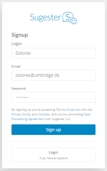 Next, fill in required fields. Remember to use the same email address on which you've received a welcome message:
