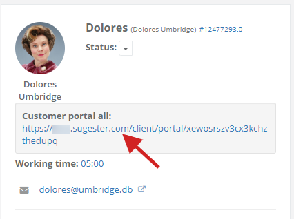 First of all, select CRM > Clients > choose a client, to whom you'd like to grand an access to the portal. Copy the link from the client's profile: