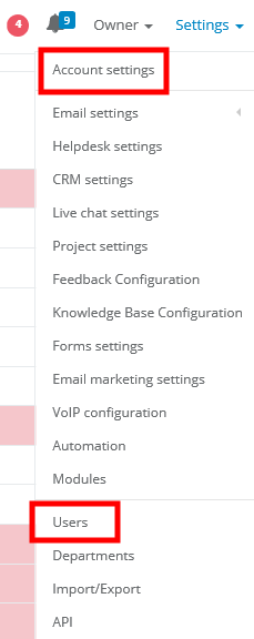 3. access to email boxes, projects, and email templates (unfold More to have access to this settings)