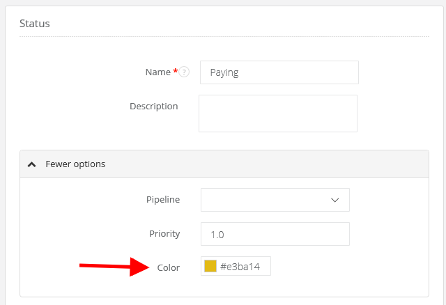 Click on Color field and select the one you want to assign to a status.