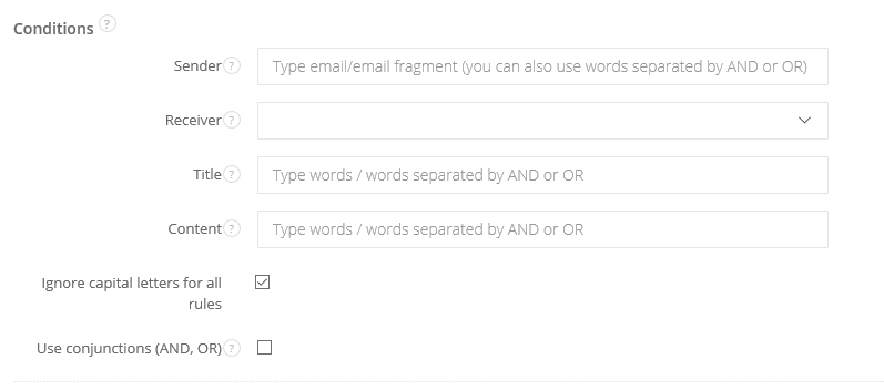 Ignore capital letters for all rules - in emails' universal filter. From now on, it doesn't matter if you write conditions in dedicated fields with small/capital letter, filter will work anyway and adjust to given conditions. You don't have to think twice, when you create eg. filter for invoices, if in the title you should write 'Invoice' or 'invoice'. Just mark the checkbox and it won't matter:)
