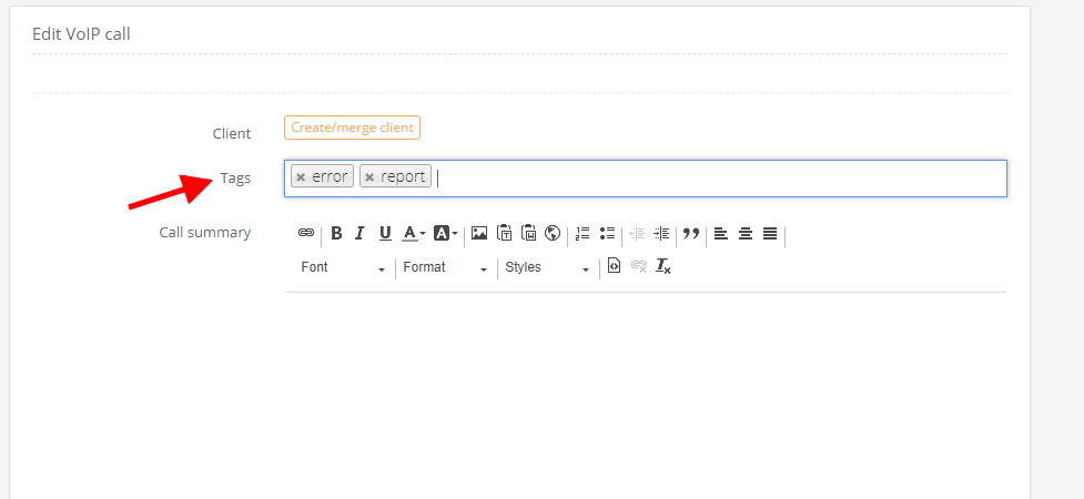 To make use of information from VoIP notes, it's a good idea to tag them. You just have to fill in the new Tag field which showed up in a note that you make while/after you had a phone call. Tagging is adding to a note a mark/tag, which will describe your call with only one word - asking for an offer, presentation request or error report. It will make calls browsing much faster, it's also easier to see, what kind of calls you receive the most. It might be a good way to fill your knowledge base with new information or think about enabling it, if you don't have one yet :)