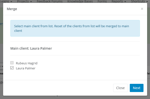 3. Select a main client while merging