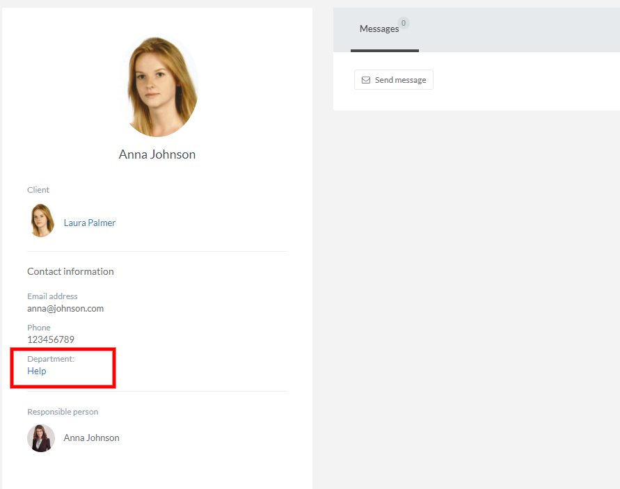 Luckily we listen to you and care about your needs:) You can add any department you want to any contact in your system, which is not assign to a client. If a contact is pinned to a client, it 'inherits' automatically client's department.