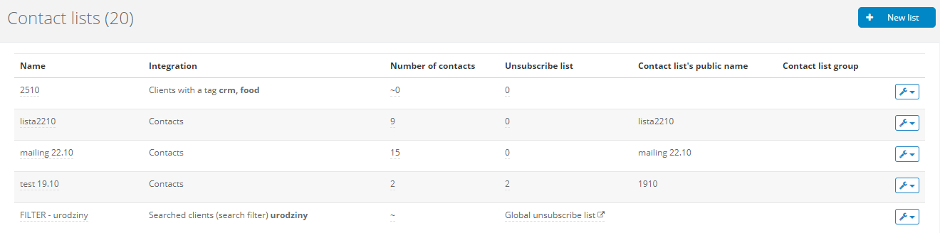 Basically, from now on you can create your contact lists for email campaigns much faster, and from one place in the system. A way to create a contact list remain the same - you can still use tags or advanced search in clients or contacts in CRM.
