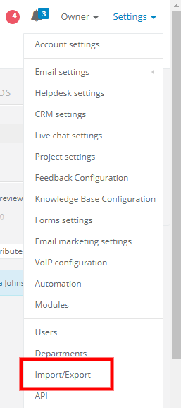 If you want to export your clients database to XLS file, you can easily do it in a few steps. First, select Settings > Import/Export.
