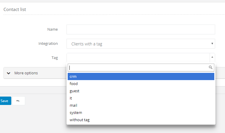 A small upgrade with contact lists based on clients' tags. Extension is connected just to 'Tag' field. Until now, while adding a new list, after selecting in 'Integration' Clients with a tag, you had an additional field, where you could manually write down tag's name. From now on you can just select a tag from the list of all clients' tags in CRM, so you don't have to remember all names:)