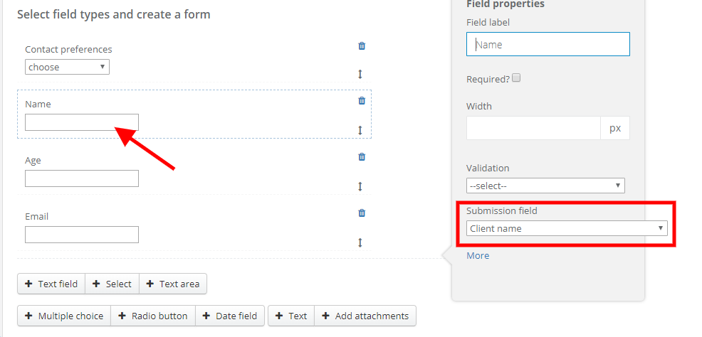 Note: While creating a form, please remember to set in one field (where a client will leave email address)