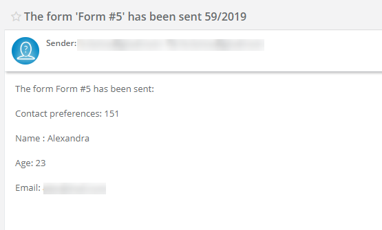 Do Sugestera przyjdzie mail z wynikami formularza. Tytuł maila będzie zaciągał się z pierwszego okna z formularza, który klient uzupełniał: