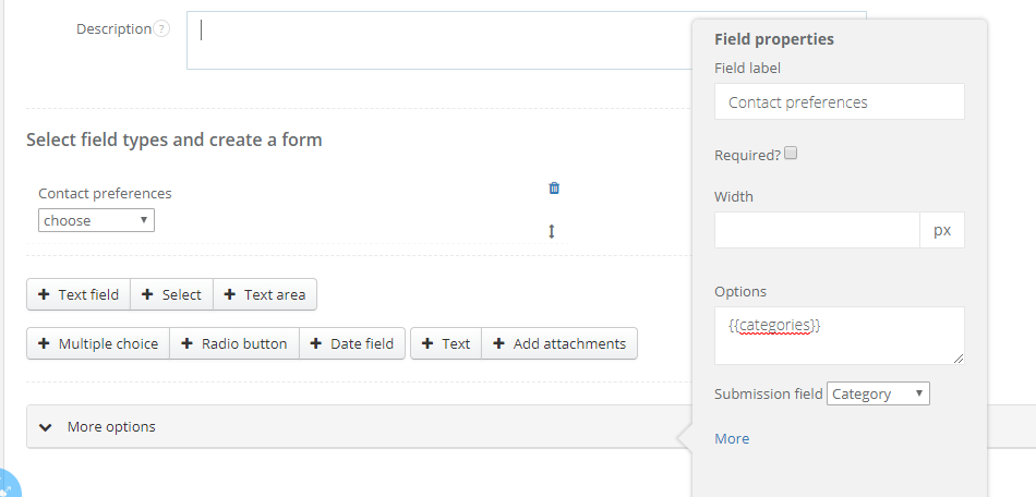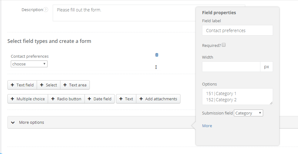 Category - information from this field in the form will be saved in the Category field in the task
