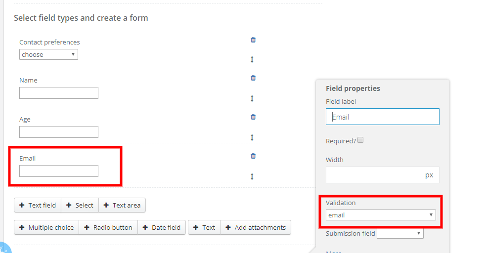If you add to your form an Email field, and you want the system to check if an address is correct, select