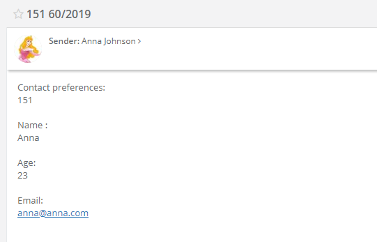 After you open an email you will see a questions from the form and client's answers: