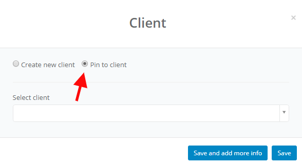 After selecting this feature you will see a window, where you can select if you want to create a new client, or add new contact to existing one.