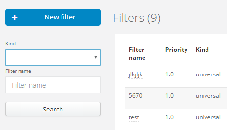 You have to admit - when the list is long, it's much easier to find what you're looking for with the browser. You don't have to go through next pages to find a filter you want to edit. From now on you can save your time and just use the simple search. All you have to do is to write down the name of the filtert/macro or it's part, and the system will display matching results. Additinally, you can use the