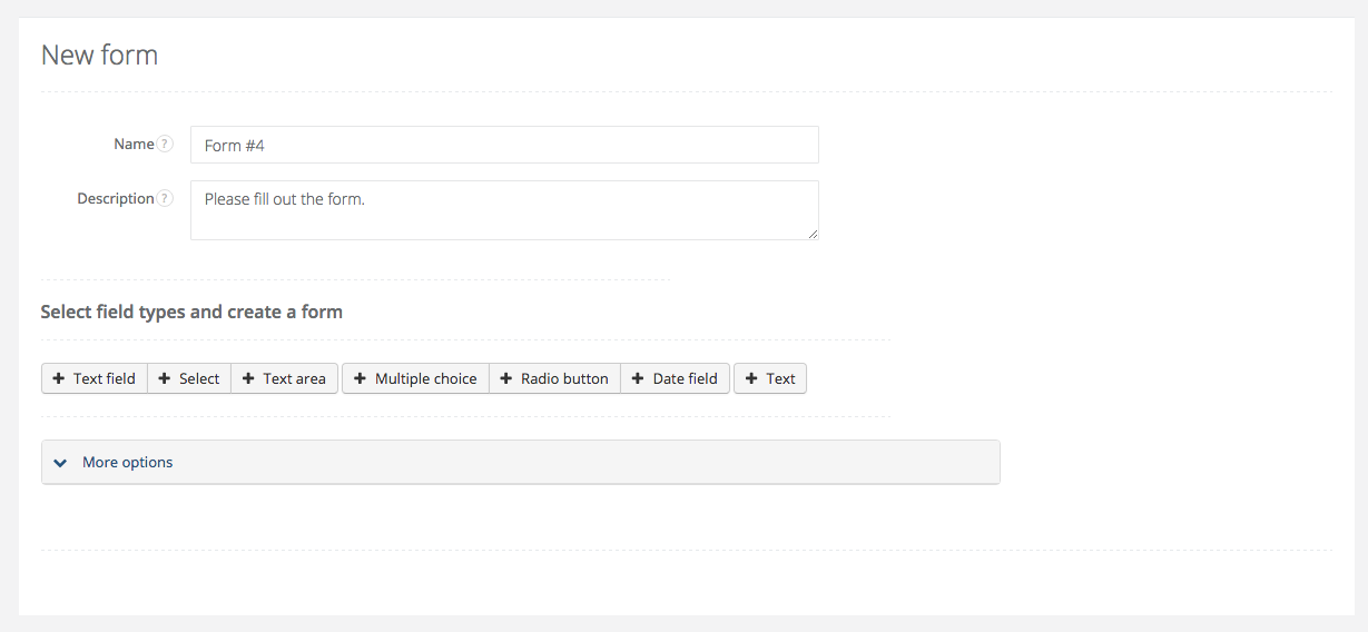If you're satisfied with the fields and descriptions on your form, you can proceed to More options. The advanced options form looks like this: