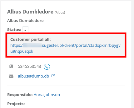 - select CRM > Clients, pick a client, then edit, unfold more options and mark the Customer portal checkbox
