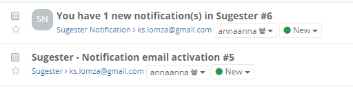 Sugester can send notifications to the new system tasks, comments or emails. You can also find system notifications in the right top panel, after clicking on the bell icon.