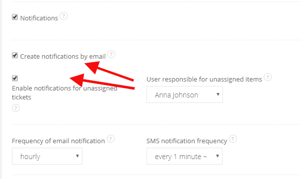 This way you'll receive a notification about each task or email assigned to you. If you also want to receive an info about unassigned posts, go a little bit lower. Here mark Enable notifications for unassigned tickets checkbox: