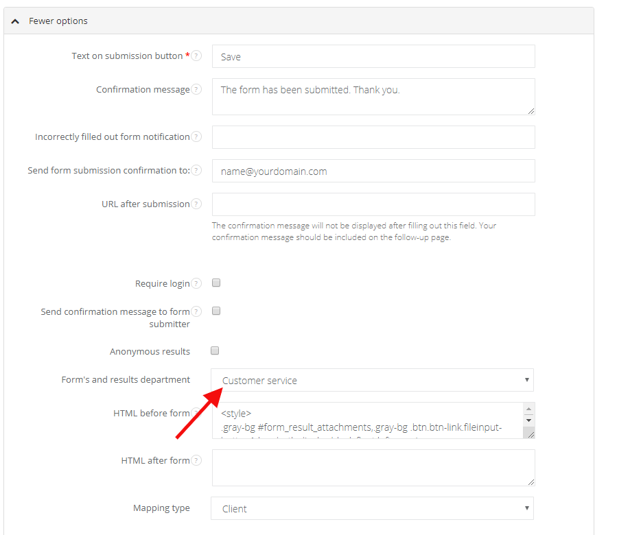 If you're running several departments and each of them is using forms, it might be necessary to disable one department from seeing another department's forms and results. Let's say you're conducting a satisfaction level survey among your employees, think what might happen if someone undesirable can see its results? To make sure such situation won't take place, you can set forms and its results department.