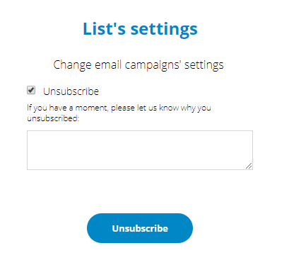 After clicking in the link, a receiver will be transfered to the unsubscribe page: