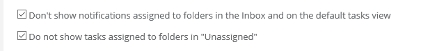 Don't show notifications assigned to folders in the Inbox and on the default tasks view and