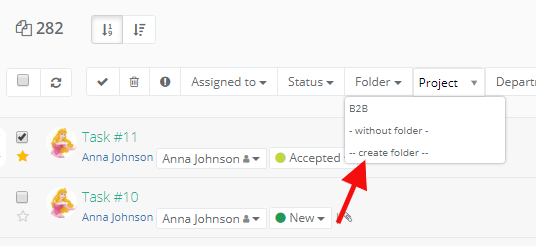 Note: You can still use folders for projects. First create a folder, as mentioned above, and assign a project to a folder later.