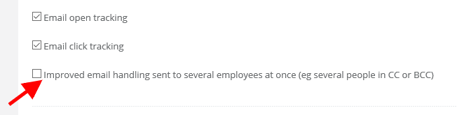 To enable this feature on your account, navigate to Settings > Helpdesk settings and highlight the check box Improved email handling sent to several employees at once (eg several people in CC or BCC) .